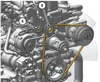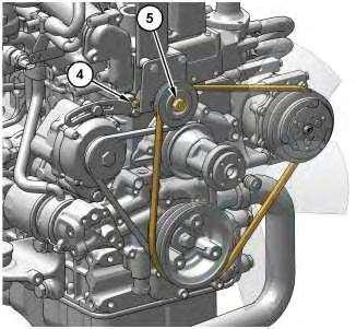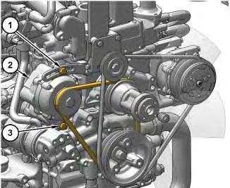 TheV-beltmustbetensionedcorrectly.Failuretotensionthe beltproperlycouldcausedamagetothebeltand/ortotheair conditionercompressor.