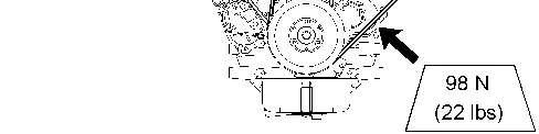 2.Applyapproximately98N(22lb)offorcemidwaybetweenthealternatorandcrankshaft pulleys.