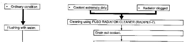 * If you accidentally splash FUSO DIESEL LONGLIFE COOLANT, FUSO ANTIFREEZE, OR RADIATOR ANTIRUST (RADIPET 9) in your eyes, wash it out immediately with water and seek medical attention.