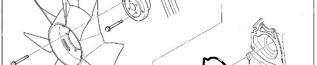 * The water pump pulley is driven by two belts. Always replace the two belts simultaneously to ensure that both belts have the same tension.