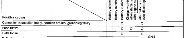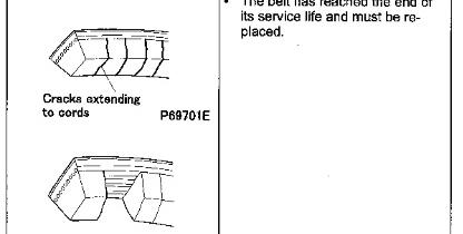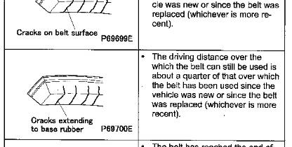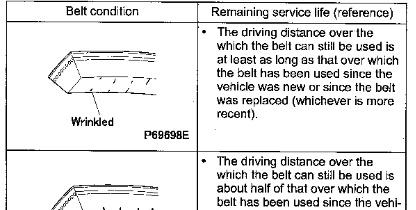 * Visually check the belts for possible cracks and damage. Belt replacement time varies depending on the severity of cracks and damage that may be found through the check. Study the table given below for the applicable replacement time.