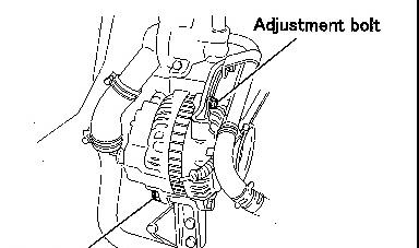 * Loosen the alternator mounting bolt, and adjust the tension of the belt by moving the alternator as required.