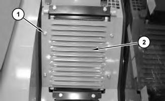 2. Remove bolts (1) and panel (2) .