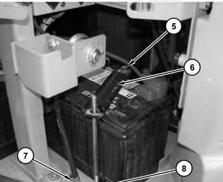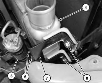 4. Remove bolts (6) and place refrigerant receiver-dryer (5) to the side. Remove bolts (8) and bracket assembly (7). Remove the bolts from the rear of aftercooler (4). Remove aftercooler (4) .