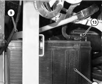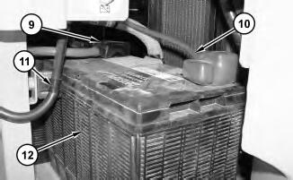 8. Disconnect positive battery cable (10). Remove clamp (11). Remove battery (12) .