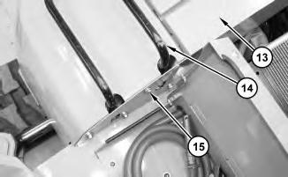 8. Remove bolt (14) from panel (13). Remove four bolts (15) from panel (13) .