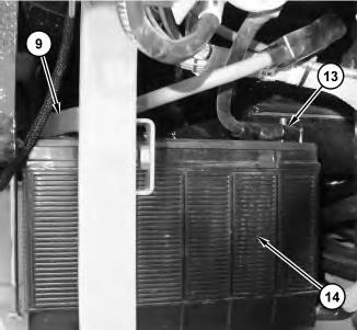 1. Position battery (14). Connect battery cable (13). Connect battery cable (9) .
