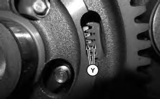 1. Ensure that Timing Marks (Y) on the idler gear and the camshaft gear are aligned. Refer to illustration 1.