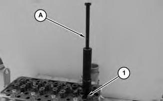 5. Remove Tooling (A) . Use a suitable container to catch the valve lifters (1) as the valve lifters (1) slide out the bottom of the cylinder block.