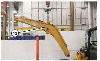 10. Attach a suitable lifting device to pin assembly (11) on top of boom (12).