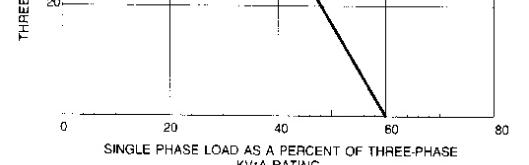 When operating with significant single phase loads, the three phase/single phase load combinations must lie below the line on the graph.