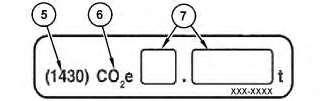 Ifequipped,thisplateprovidesthebelowadditionalEuropeanUnionrequiredgreenhousegasinformation. (5)(1430)-ThisistheGlobalWarmingPotentialofR134a (6)CO2equivalent