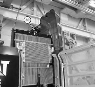 20. Attach Tooling (A) and a suitable lifting device to cooling package (36). The weight of cooling package (36) is approximately 195 kg (430 lb).