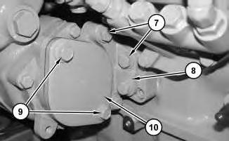 4. Remove bolts (9) and cover (10). Ensure that the timing mark on the crankshaft of the compressor is positioned between the timing marks on the housing for the compressor. Install cover (10) and bolts (9). Install bracket (8). Install bolts(7).