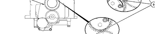2. Correct fuel injection timing and correct valve mechanism operation is determined by properly timing crankshaft gear (8) and camshaft gear (6) to idler gear (7). Also, high-pressure fuel pump gear (5) must be timed to camshaft gear (6). During installation of the front gear, timing marks (9) on idler gear (7) must be in alignment with the timing marks on crankshaft gear (8) and the timing marks on camshaft gear (6). The "0" mark on camshaft gear (6) must align with