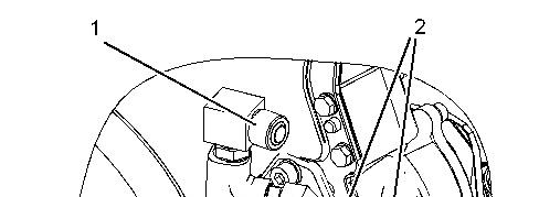 8. Connect harness assembly (1) to electronic unit injector (2) . Tighten harness assembly (1) to a torque of 2.50 ± 0.25 N·m (22 ± 2 lb in).