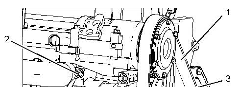 4. Connect the harness assembly to alternator (3) and install the bolt. Tighten the bolt to a torque of 4.4 ± 1.0 N·m (39 ± 9 lb in).