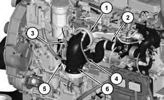 4. Loosen clamp (1) and remove air inlet elbow (6) .