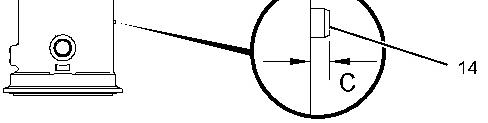 c. Install dowel (14) to the depth illustrated by Dimension (C). Dimension (C) is 2.9 mm (0.11 inch).