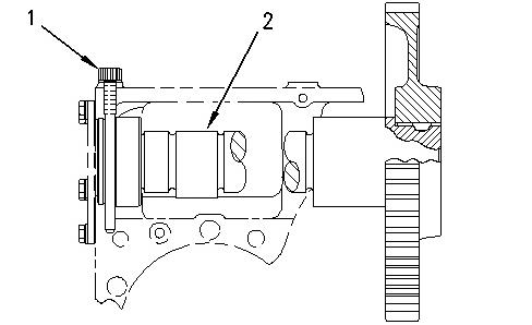 Note: During installation of camshaft (2), rotate the camshaft in both directions in order to prevent binding in the camshaft bearing bores.