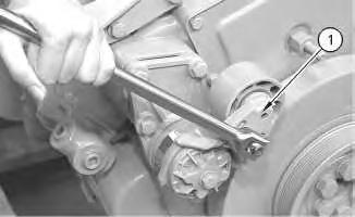 1. Use a breaker bar to release the tension on belt tightener (1). Remove the drive belt.