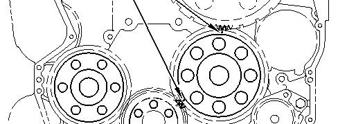 2. Ensure that the timing marks on the following gears are aligned: the camshaft drive gear, the idler gear and the crankshaft gear.