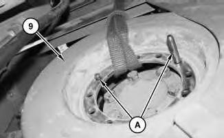 8. Attach a suitable lifting device to vibration damper (9). The weight of vibration damper (9) is approximately 36 kg (80 lb).