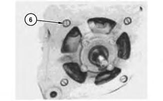 4. Mark the front and rear frame assembliesfor proper assembly. Remove four screws (6) (one hasa nut on it on the back of the alternator).