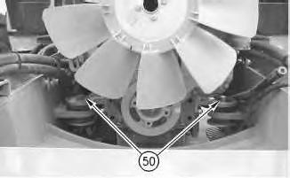 9. Install the washers and two engine mounting bolts (50). Tighten bolts (50) to 220 ± 30 N·m (160 ± 20 lb ft).