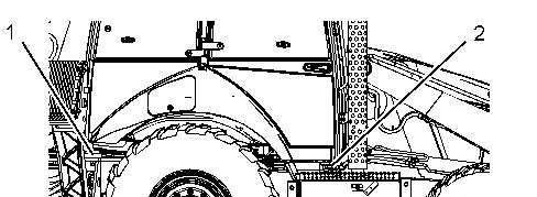 Applylubricanttothegreasefittings(2)fortherodendoftheliftcylinder.Thereisagrease fittingforeachsideofthemachine.