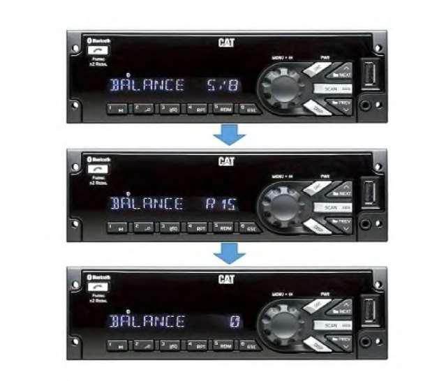 4.PressthevolumeknobtoselecttheBalanceoptionwhenitisdisplayed.IftheBalance showsanyothersettingsthan0,adjustthevolumeknobclockwiseorcounter-clockwise untilBalance0isdisplayed.Thenpressthevolumeknobagaintoconfirmtheselection.