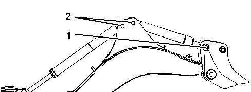 Applylubricanttothegreasefitting(2)fortheheadendoftheboomcylinderandtheheadendof thestickcylinder.