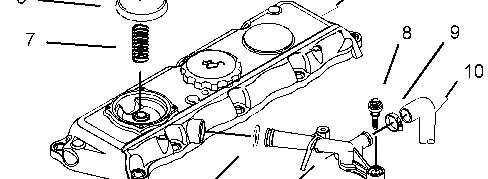 6.Installthespring(7),thecap(6),andanewdiaphragm(4).