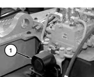 Thebackupalarm(1)ismountedontherearofthemachine. Accesstothebackupalarmrequiresremovalofupperrearaccesspanel.