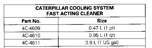 Fast Acting Cooling System Cleaner is available from your Caterpillar dealer in the quantities listed. Follow the product label directions for proper use.