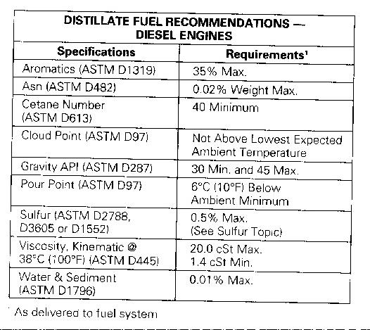 Caterpillar diesel engines are capable of burning a wide range of distillate fuels. Burning clean, stable blends of distillate fuel meeting the listed requirements will provide quality engine service life.
