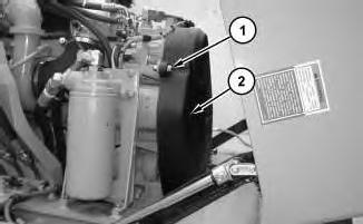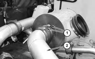 3. Position guard (2) and install bolts (1). Tighten bolts (1) to a torque of 50 ± 10 N·m (37 ± 7 lb ft).