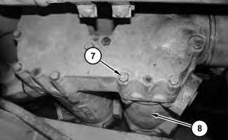 10. Remove bolts (7). Use two people to remove transmission cooler (8). The weight of transmission cooler (8) is approximately 26 kg (58 lb).