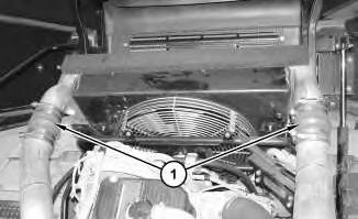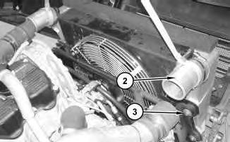 3. Attach a suitable lifting device to aftercooler (2). The weight of aftercooler (2) is approximately 30 kg (65 lb). Remove bolts (3) from each side of aftercooler (2). Remove aftercooler (2) .