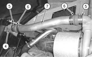 14. Install hoses (6) and tube (7) to aftercooler (4) and the turbocharger. Tighten clamps (5) .