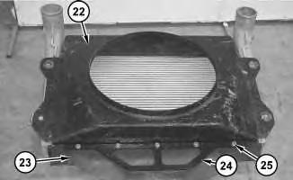 7. Install shroud (22) onto aftercooler (4) . Install plate (24) and baffle (23) . Install bolts (25) , the washers, the spacers, and the nuts.