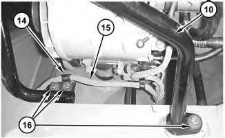 11. Position harness assembly (18) and clip (17) . Position harness assembly (15) and clip (14) . Install six bolts (16) and the washersthat secure support (10) to the frame.