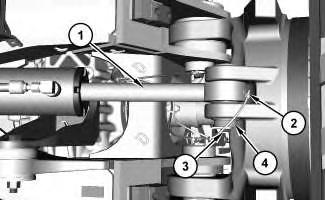 2. If necessary, disconnect grease hose assembly (2). Remove bolt (3) and the washer. Set the grease line bracket to the side. Remove washer (4).