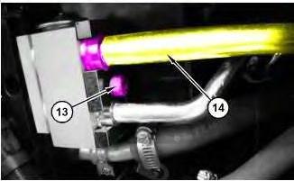 11. Remove bolt (13) and disconnect tube assemblies (14).