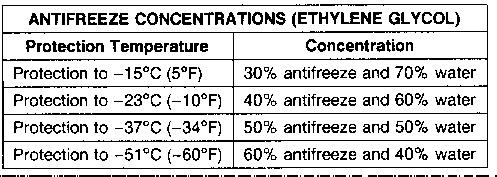 Check the specific gravity of the antifreeze solution frequently in cold weather to ensure adequate freeze protection. Premix coolant solution to provide protection to the lowest expected outside (ambient) temperature. Pure undiluted antifreeze will freeze at -10°F (-23°C).