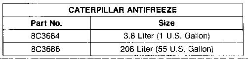 Caterpillar Antifreeze is available through your Caterpillar dealer in quantities that follow.