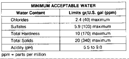 If distilled or de-ionized water is NOT available, use water that meets the minimum acceptable requirements in the chart. To determine your water characteristics, contact the local water department, agricultural agent or an independent laboratory to perform the testing service.