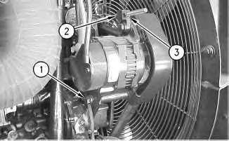 1.Loosenpivotbolt(1)andadjustmentnuts(2)and(3).