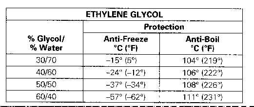 Forambienttemperaturesrequiringlowerfreezeprotection (higherthan50percentglycol),useethyleneglycol.DONOT usepropyleneglycol.