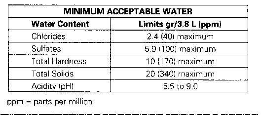 Waterthatdoesnotmeettheminimumacceptablelimitswill reduceengineservicelifewhenusedincoolingsystems.
